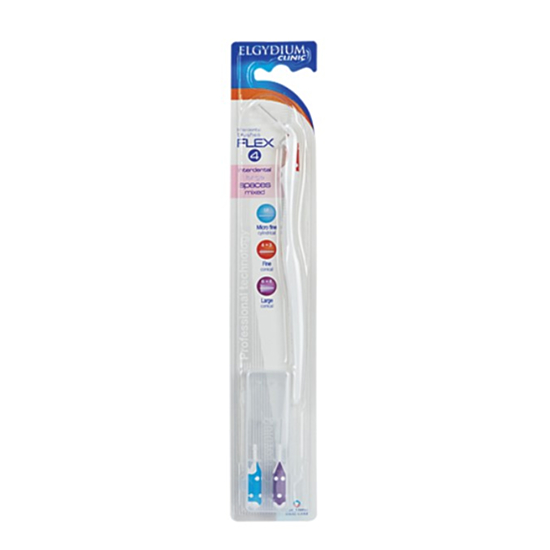 ЕЛГИДИУМ ЧЗ ФЛЕКС ТЕСНИ И ШИРОКИ ПРОСТРАНСТВА МИКС - Elgydium Clinic Flex е специално разработена за ефективно почистване на всички размери междузъбни пространства, както и при брекети. Иновативна технология, която позволява два начина за ориентиране на посоката на четката. Комбинация от 3 четки за зъби. Тест за изтръгване на четките до 30 Нютона. Ергономични и хигиенични: Дълга релефна дръжка, конструирана за удобна употреба и достигане на труднодостъпни пространства. Контейнер за съхранение на четките и предпазване от замърсяване и деформации.