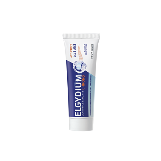 ЕЛГИДИУМ ПАСТА ЗА ЗЪБИ ТАЙМЕР ЗА ЗАЩИТА ОТ КАРИЕС ДЕТСКА 3+ 50МЛ е обучителната, гелообразна паста за зъби Таймер на марката Елгидиум, която променя цвета си, индикирайки, че е време да се изплакне. Механичното действие на четката за зъби освобождава пигмените, съдържащи се в микрокапсулите. Те постепенно оцветяват пяната, за да се осигури 2 минути време за миене. Пастата е с мека и нискоабразивна почистваща основа, която щади венците и емайла на зъбите и защитава от кариес. Предназначена за възрастни и деца над 3 годишна възраст. С вкус на горски плодове. Подходяща за ежедневна употреба. 96% съставки от естествен произход.