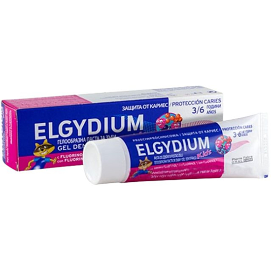 ЕЛГИДИУМ ПЗ ДЕЦА 3-6 ГОД. ГОРСКИ ПЛОДОВЕ 50МЛ ПРОМО е гелообразна паста за зъби с вкус на горски плодове, която ще предпази от киселинни атаки и ще подпомогне реминерализирането на емайла. Детската паста за зъби за защита от кариес на Elgydium е предназначена за деца от 3 до 6 години, защитава първите постоянни зъби на децата, благодарение на адаптираната към възрастта концентрация на флуорид (1000 ppm флуоридни йони). Съставът на пастата е на неабразивна основа и няма да навреди на венците или на емайла. С прекрасен вкус и аромат на горски плодове, който е един от любимите детски плодове. Подходяща е за ежедневна употреба.
