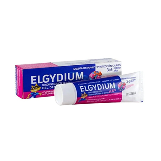 ЕЛГИДИУМ ПЗ ДЕЦА 3-6 ГОД. ГОРСКИ ПЛОДОВЕ е гелообразна паста за зъби с вкус на горски плодове, която ще предпази от киселинни атаки и ще подпомогне реминерализирането на емайла. Детската паста за зъби за защита от кариес на Elgydium е предназначена за деца от 3 до 6 години, защитава първите постоянни зъби на децата, благодарение на адаптираната към възрастта концентрация на флуорид (1000 ppm флуоридни йони). Съставът на пастата е на неабразивна основа и няма да навреди на венците или на емайла. С прекрасен вкус и аромат на горски плодове, който е един от любимите детски плодове. Подходяща е за ежедневна употреба.