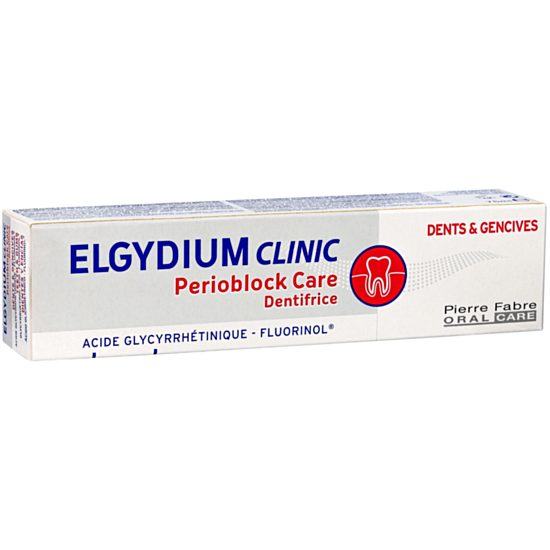 ЕЛГИДИУМ ПЗ КЛИНИК ПЕРИОБЛОК КЕЪР 75 МЛ - За нежна и ефективна грижа за устната кухина изберете пастата от Elgydium, която ще реминализира емайла и ще успокои венците. Пастата за зъби спомага в грижата за раздразнени венци и реминерализира емайла благодарение на своята формула, съдържаща Fluorinol. Тя осигурява грижа за венците и спомага за комфорта при четкане.