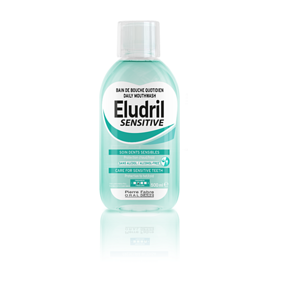 ЕЛУДРИЛ ВОДА ЗА УСТА СЕНЗИТИВ ЗА ЧУВСТВИТЕЛНИ ЗЪБИ 500МЛ - Елудрил Сензитив ежедневна вода за уста за чувствителни зъби. Допринася за възстановяване на ежедневния комфорт при зъбна свръхчувствителност. Предназначена за хора с чувствителност на зъбите провокирана от топли, студени, кисели или сладки храни и напитки. Спомага за подобряване на ефикасността на миенето на зъби и ограничава количеството на зъбна плака. Елудрил Сензитив е готов за употреба разтвор, без съдържание на алкохол. Има приятен ментов вкус с нотки на ванилия.