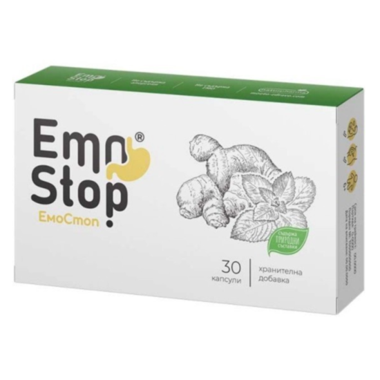 Емостоп е натурална комбинирана формула със стандартизирани екстракти от джинджифил и мента, която успокоява храносмилателната система и спомага за намаляване на чувството за гадене и позивите за повръщане от различен произход.