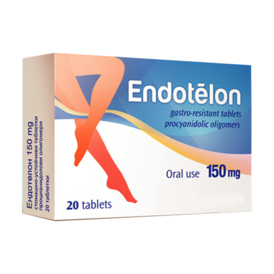 Endotelon 150 mg gastro-resistant tablets представлява лекарствен продукт без лекрско предписание, съдържащ процианидолови олигомери, който е предназначен за подобрение на симптомите свързани с венозна и лимфна недостатъчност, свързана с оплаквания като умора, тежест, подуване и болки в краката, крампи (мускулни схващания), „непочиващи крака”, начален декубитус. Ендотелон е венотоник (той повишава тонуса на венозните стени) и предпазва съдовете (той повишава устойчивостта на малките кръвоносни съдове).