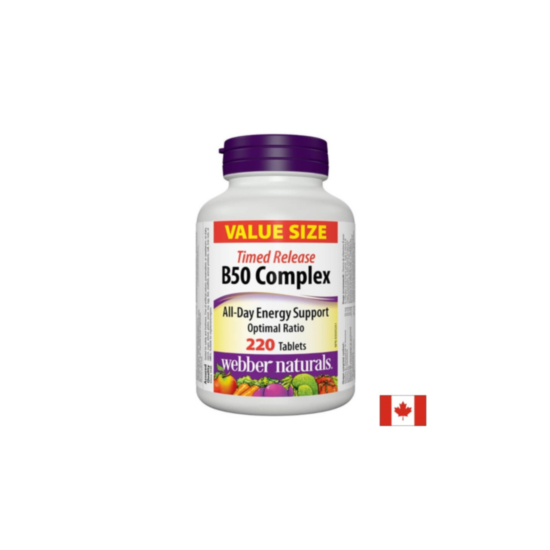 Витамин В50 комплекс с удължено освобождаване на канадската компания Webber Naturals e висококачествена формула съдържаща витамини от група В за нормалното протичане на обменните процеси в организма.
