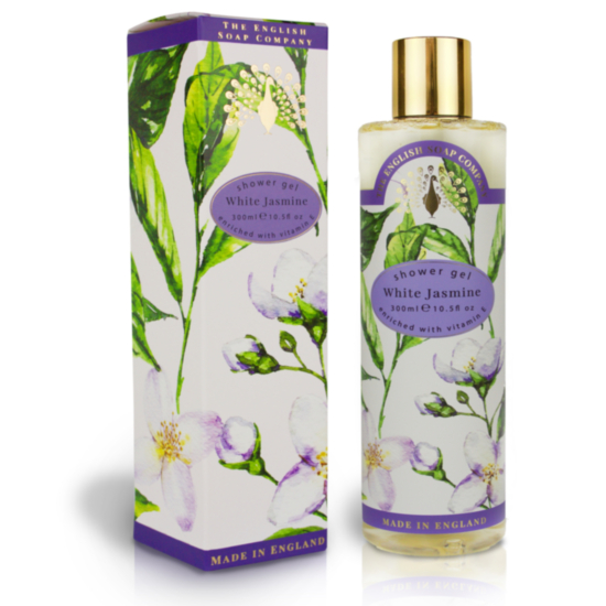 Ароматен, освежаващ хидратиращ душ гел, обогатен с Витамин Е. Ароматът е с нежна, цветна сърцевина от Бял жасмин и листа от Виолетка, върху база от Кехлибар и Мускус.