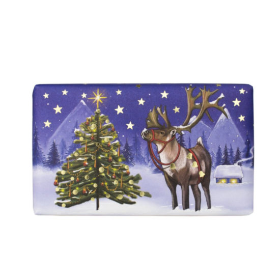 Сапунът е вдъхновен от мистериозния елен, който ви пренася в Снежната приказка на Лапландия. Опакован в напълно рециклируема хартия, той не само носи празнично настроение, но и грижа за околната среда.