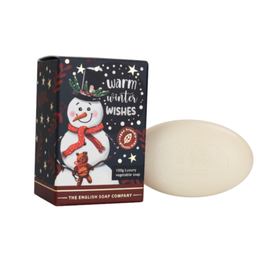 Kоледен сапун в очарователна опаковка със снежен човек и ръчно рисувани илюстрации, които улавят коледната радост и настроението, което носи празничният сезон. Ароматът е топъл и дървесен на тамян и смирна, с върхови нотки от Кипарис, сърцевина от Сандалово дърво, Кедрово дърво и Канела, на база от Тамян и Кехлибар.