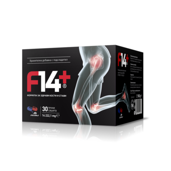 F14+ ФОРМУЛА ЗА ЗДРАВИ КОСТИ И СТАВИ ТЕЧНИ САШЕТА Х 30 е хранителна добавка за здрави кости и стави. Подкрепя здравината и еластичността на ставния хрущял.