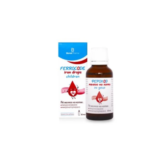 Ферокод е хранителна добавка, която съсъдржа чисто желязо в течна форма, предназначено за бебета над 6 месеца, деца и възрастни. Ферокод Желязо на капки е маслен разтвор с вграден капкомер за прецизно дозиране. Опаковката съдържа над 33 дневни дози.