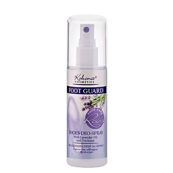 ФУТГАРД РЕЛАКС ДЕО СПРЕЙ ЗА ОБУВКИ премахва неприятния мирис на обувките, ароматизира и дезодорира. Спреят е висококачествен продукт, който ви гарантира оптимален комфорт през целия ден, тъй като се грижи за запазване усещането за чистота и хигиена в обувките. Обогатен е с натурално масло от лавандула и триклозан. Отличният му ефект се дължи на ефикасната формула с млечна киселина и калиев перманганат.