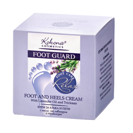 Кремът за крака и пети FOOT GUARD RELAX се използва при болезнени и напукани пети, при сърбежи между пръстите и суха кожа на краката, особено подходящ при изпотяване на краката и неприятна миризма. Ефективната формула е базирана на комбинация от Цинков оксид и триклозан. 50мл.