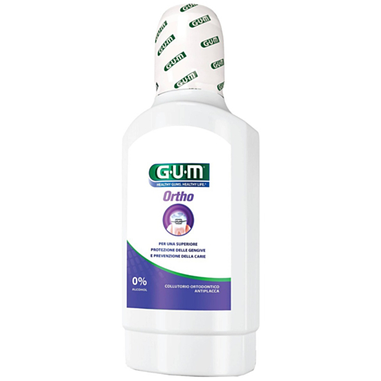 ГЪМ 03461 ВОДА ЗА УСТА ОРТО 300МЛ А - Специално създадена за употреба от хора с ортодонтски апарати. Гарантира висока защита срещу кариеси и възпаление на венците. Предотвратява образуването на бели петна и кариеси благодарение на уникална комбинация с флуор и изомалт за по-добра реминерализация на емайла. Съдържа натриев флуорид. Без алкохол.