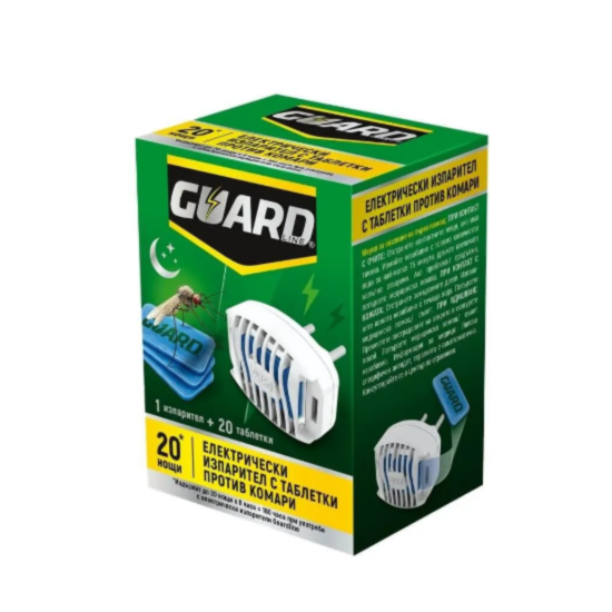 Guardline електрически изпарител с таблетки е практично и удобно решение за защита от комари в домашни условия. Комплектът включва 20 таблетки, като всяка осигурява до 8 часа надеждна защита.