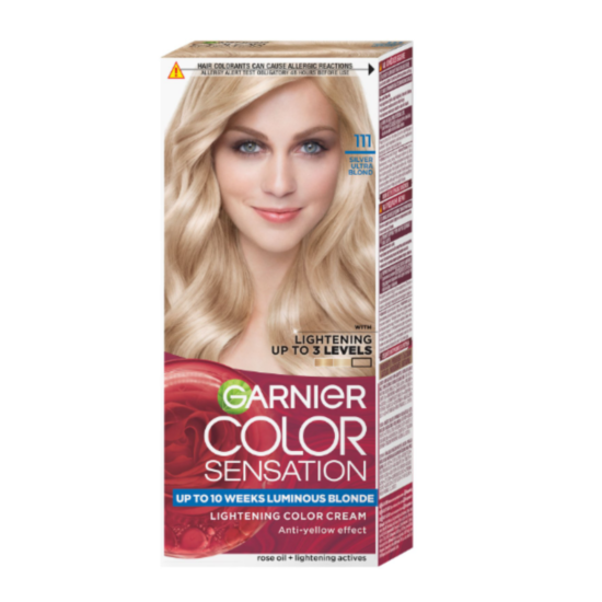 ГАРНИЕ БОЯ ЗА КОСА COLOR SENSATION 111 супер сребърно рус - Боя за коса с високо устойчиви пигменти за постигане на най-интензивни и дълготрайни нюанси. Боята за коса на Гарниер е рзкошна разкрасяваща грижа, обогатена с екстракт от седеф, който дарява косата с копринена мекота при допир и огледален блясък. Продукта осигурява оптимално покритие на белите коси. По време на боядисване, боята оставя приятен аромат. Иновативната боя за коса е с ниско съдържание на амоняк.