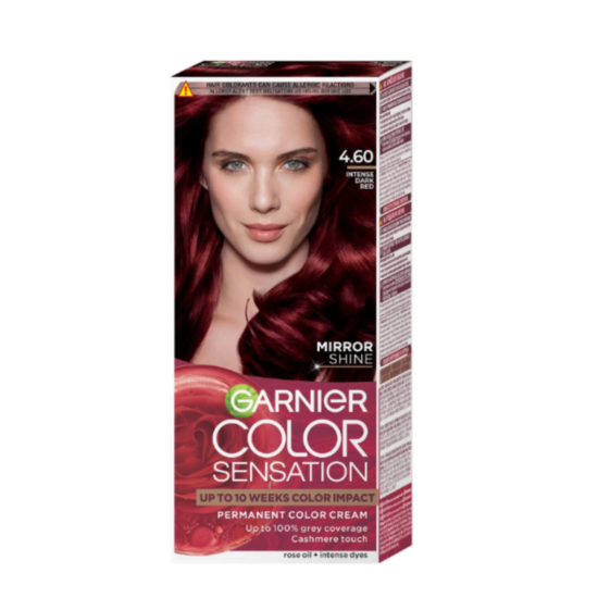 ГАРНИЕ БОЯ ЗА КОСА COLOR SENSATION 4.60 червеникаво кестеняв - Боя за коса с високо устойчиви пигменти за постигане на най-интензивни и дълготрайни нюанси. Боята за коса на Гарниер е рзкошна разкрасяваща грижа, обогатена с екстракт от седеф, който дарява косата с копринена мекота при допир и огледален блясък. Продукта осигурява оптимално покритие на белите коси. По време на боядисване, боята оставя приятен аромат. Иновативната боя за коса е с ниско съдържание на амоняк.