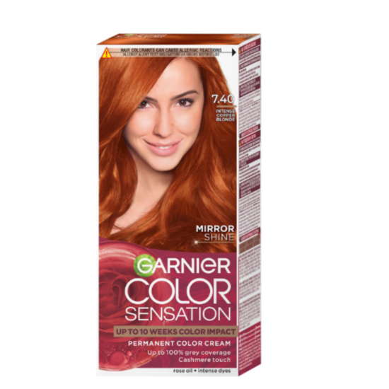 ГАРНИЕ БОЯ ЗА КОСА COLOR SENSATION 7.40 amber light - Боя за коса с високо устойчиви пигменти за постигане на най-интензивни и дълготрайни нюанси. Боята за коса на Гарниер е рзкошна разкрасяваща грижа, обогатена с екстракт от седеф, който дарява косата с копринена мекота при допир и огледален блясък. Продукта осигурява оптимално покритие на белите коси. По време на боядисване, боята оставя приятен аромат. Иновативната боя за коса е с ниско съдържание на амоняк.
