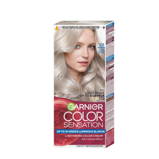ГАРНИЕ БОЯ ЗА КОСА COLOR SENSATION S11 ULTRA - Боя за коса с високо устойчиви пигменти за постигане на най-интензивни и дълготрайни нюанси. Боята за коса на Гарниер е рзкошна разкрасяваща грижа, обогатена с екстракт от седеф, който дарява косата с копринена мекота при допир и огледален блясък. Продукта осигурява оптимално покритие на белите коси. По време на боядисване, боята оставя приятен аромат. Иновативната боя за коса е с ниско съдържание на амоняк.