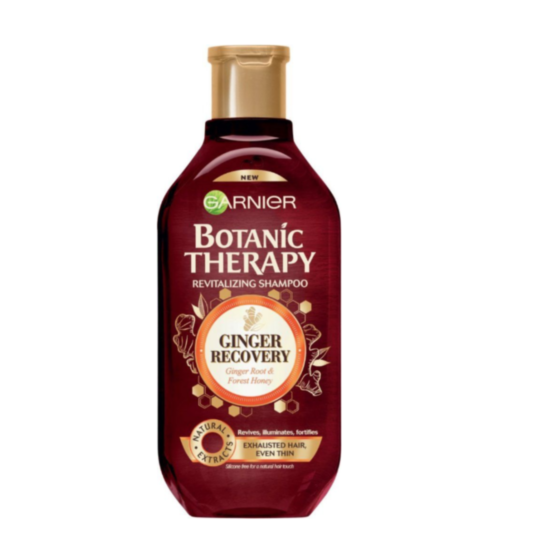 ГАРНИЕ БОТАНИК ТЕРАПИ ШАМПОАН ЗА ПОВЯХНАЛА КОСА С ДЖИНДЖИФИЛ И МЕД 250МЛ е шампоан за коса, който я ревитализира и връща естествената ѝ красота. Неговата формула съдържа съставки с натурален произход и е специално разработена за изтощена коса. Обогатена е с органичен екстракт от корен от джинджифил, който съдържа витамини и антиоксиданти. Той ревитализира и връща жизнеността и блясъка на косата, прави я по-силна и по-здрава. Включеният мед подсилва косъма, придава му еластичност и блясък. Добавени са още сок от алое вера, масла от соя и слънчоглед, които дълбоко хидратират и подхранват косъма. При редовна употреба косата е подсилена отвътре, изглежда по-здрава и изпълнена с живот. Без парабени. Дерматологично тестван продукт.