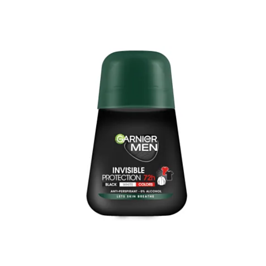 ГАРНИЕ ДЕЗОДОРАНТ РОЛ-ОН МЪЖКИ INVISIBLE BLACK, WHITE & COLORS 50МЛ е дезодорант рол-он с иновативната формула против изпотяване. Създадена със специален невидим агент, който предпазва от появата на петна в зоните на изпотяване. Без бели петна върху черните дрехи, без жълто оцветяване след изпиране по белите дрехи и без избледняване на цветните дрехи. Благодарение на ултра абсорбиращите свойства на минералита (Perlite) *, може да разчитате на до 48 часова невидима защита против изпотяване и неприятни миризми, за свежо усещане през целия ден. Формула без алкохол и парабени.