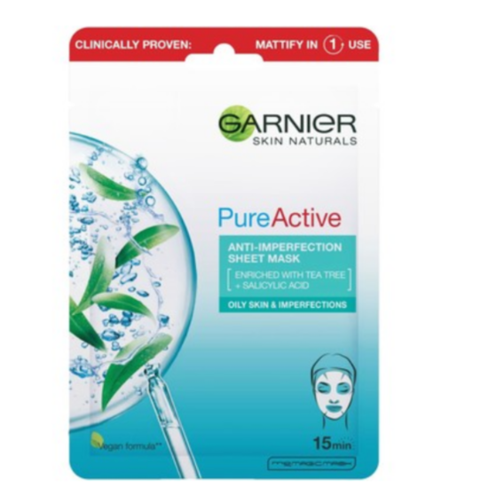 ГАРНИЕ ПЮР АКТИВ ХАРТИЕНА МАСКА ЗА ЛИЦЕ 28ГР е маска за лице, която почиства порите, матира и едновременно с това хидратира кожата на лицето. Нейната формула е с активни съставки от чаено дърво, салицилова киселина, хиалуронова киселина и витамин Е. Със своите антибактериални и противовъзпалителни свойства почиства и освежава кожата и стимулира възстановяването и.