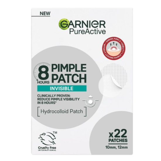 GARNIER PIMPLE PATCH Прозрачни лепенки против пъпки. Ултра тънък хидроколоиден пластир, подходящ за всеки тип и всички тонове кожа. Изсушава пъпките като подпомага абсорбирането на течностите и замърсяванията. Създава защитен слой върху пъпката, абсорбира примесите и изравнява повърхността на кожата само за 8 часа. Не оставя следи.