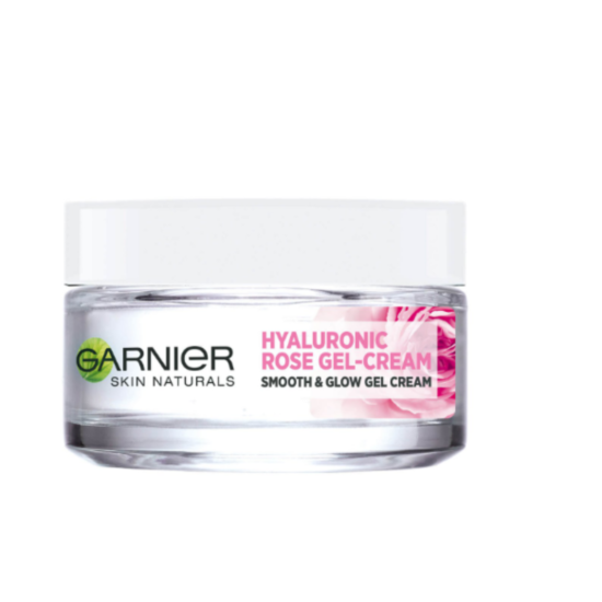 ГАРНИЕ ХИАЛУРОНИК ГЕЛ КРЕМ С РОЗОВО МАСЛО 50МЛ e хидратиращ крем-гел за лице за всеки тип кожа. Крем-гелът осигурява дълготрайна хидратация на кожата до 24 часа и ѝ придава еластичност и здравословен блясък. Освен това я успокоява и я оставя с комфортно усещане. Формулата е обогатена с хиалуронова киселина от естествен произход, която заключва влагата в кожата, действа изглаждащо, тонизиращо и подмладяващо. Тя прави кожата мека, гладка и еластична. Вложена е розова вода, която има подмладяващи, регенериращи, антибактериални свойства. Тя интензивно хидратира и успокоява кожата.