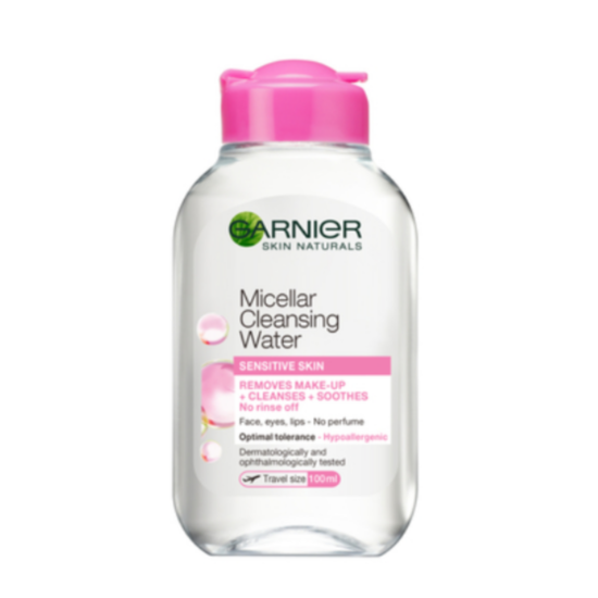 ГАРНИЕ СКИН НАТУРАЛНА МИЦЕЛАРНА ВОДА ЗА ЧУВСТВИТЕЛНА КОЖА 100МЛ е мицеларна вода, която отстранява грима и омекотява кожата на лицето и шията. Има специална съставка за почистване – активни мицели, които улавят всички замърсявания и остатъци от грим. Действа освежаващо и успокояващо на кожата.