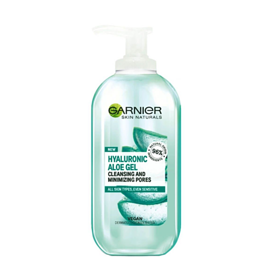 ГАРНИЕ СКИН НАТ ПОЧИСТВАЩ ГЕЛ С ХИАЛУРОНОВА КИСЕЛИНА И АЛОЕ ВЕРА 200МЛ е почистващ и хидратиращ гел за лице, предназначен за всеки тип кожа. Отстранява замърсяванията по лицето и остатъците от грим. Специалната му формула съдържа алое вера, което дълбоко хидратира кожата. В състава е добавена и хиалуронова киселина, която запазва влагата в кожата и действа тонизиращо и подмладяващо. След употребата на гела кожата е чиста, мека и еластична и с подобрен външен вид.