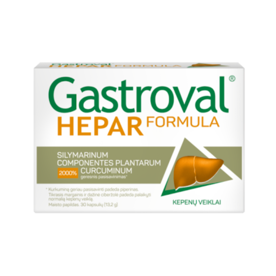 Gastroval Hepar Formula е хранителна добавка с растителни екстракти, включително куркумин, силимарин и пиперин, за подпомагане на черния дроб.