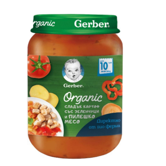 ГЕРБЕР 6458 ОРГАНИК ПЮРЕ СЪС СЛАДЪК КАРТОФ, ЗЕЛЕНЧУЦИ И ПИЛЕШКО МЕСО 190ГР.