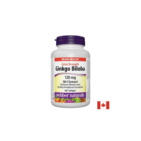 Гинко билоба Extra Strength на канадската марка Webber Naturals е натурален продукт спомагащ за подобряване оросяването на мозъка и крайниците.