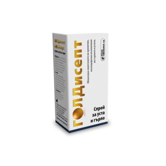 ГОЛДИСЕПТ СПРЕЙ ЗА УСТА И ГЪРЛО e разтвор под формата на спрей, с апликатор за перорално приложение. В състава на продукта влизат два вида наночастици: златните регенерира тъканите, включително епителната тъкан на гърлото и устната кухина; сребърните притежава антибактериални, противогъбични и противовирусни свойства. Продуктът се препоръчва да се използва за премахване на чувството за дискомфорт в ларинкса с нуждата за отхрачване и изкашляне, при гастроезофагиален рефлукс, пресипване, суха кашлица, а също така при всякакви състояния, свързани с усещане за сухота, парене или дискомфорт в гърлото или устната кухина. Голдисепт Спрей е приложим в случаи на възпаление и дразнене на гърлото в следствие на бактериални, вирусни и гъбични инфекции на гърлото или възпаления на лигавицата на устната кухина, ларинкса и епиглотиса. Може да се използва при възпаление на сливиците и състоянията след тяхното премахване, при афти, стоматити и гингивити. Облекчава състоянието след ендоскопски операции и оперативни интервенции в устната кухина. Голдисепт може да се използва при пациенти с язви, диабет, по време на бременност и кърмене.