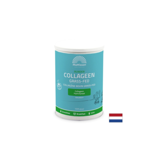 Runder Collageen Grass-Fed Solugel Mattisson е висококачествен говежди колаген, произведен от свободно пасящи говеда. Продуктът е богат източник на антиоксиданти, 18 аминокиселини и протеини, които подкрепят растежа на мускулна маса и допринасят за поддържането на здрави кости и кожа. Подобрява храносмилането и помага за възстановяване на пълноценния сън.