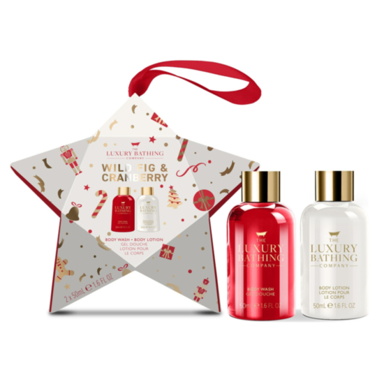 Специалният коледен комплект „Дива Смокиня и Червена Боровинка“ съчетава нежна грижа и празнична атмосфера, предоставяйки на кожата интензивна хидратация и изискан аромат.