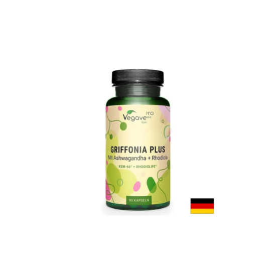 Vegavero® Griffonia Plus е висококачествена хранителна добавка, която комбинира мощните растителни екстракти грифония, ашваганда и златен корен (родиола). Тази уникална формула е разработена с цел подкрепа на нервната система, облекчаване на стреса и подпомагане на доброто настроение. Основните компоненти работят в синергия, за да осигурят балансиращ ефект, който може да подпомогне организма при справяне със стреса, безпокойството и умората, както и да подобри цялостната физическа и психическа издръжливост.