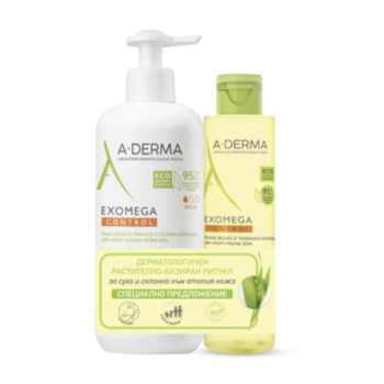 A-Derma А-ДЕРМА ЕКЗОМЕГА КОНТРОЛ РУТИНА ЗА СУХА И АТОПИЧНА КОЖА - ПОЧИСТВАЩ ГЕЛ 500МЛ + МЛЯКО 400МЛ + СЛЪНЦЕЗАЩИТЕН КРЕМ SPF50+ 150МЛПромо цена 104,14 лв. / 53,25 € Редовна цена 148,77 лв. / 76,06 €