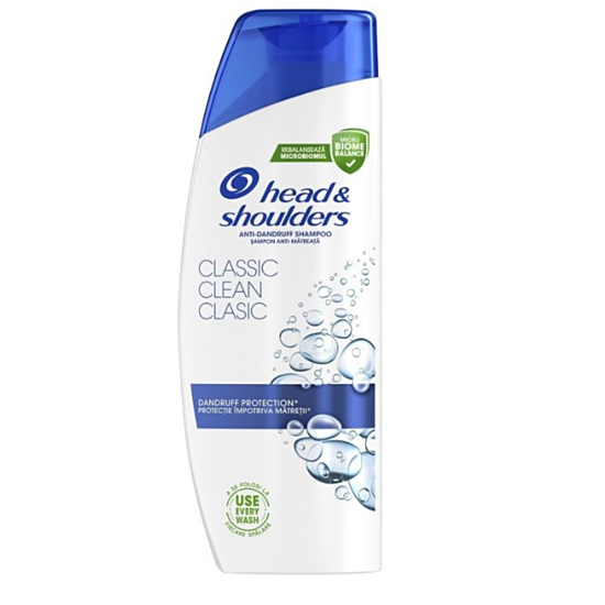 ХЕД ЕНД ШОУДЪРС ШАМПОАН ПРОТИВ ПЪРХОТ КЛАСИК 250МЛ е шампоан за коса против пърхот, предназначен за ежедневна употреба, който осигурява нежна грижа за здрава коса и блясък. Специалната му формула ефективно се бори със сърбежа, омазняването и сухото усещане на скалпа, като предотвратява появата на пърхот още преди да стане видим. Разработен да подхранва и да прави косата и скалпа до 100% свободни от пърхот (видими следи, с редовна употреба).