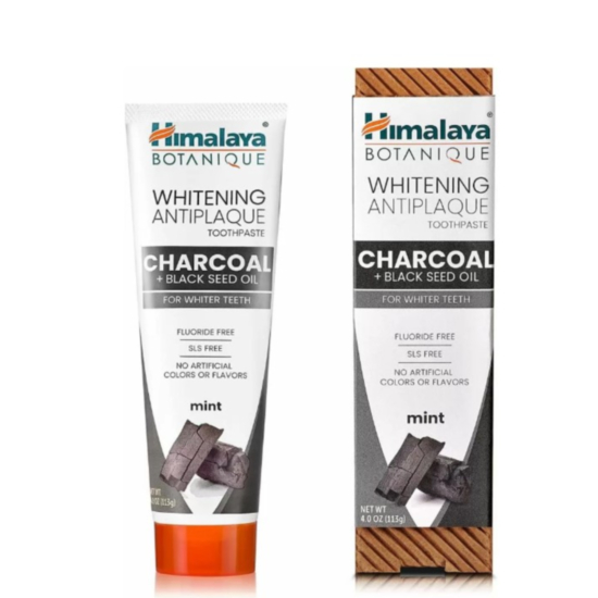 ХИМАЛАЯ ПАСТА ЗА ЗЪБИ ИЗБЕЛВАЩА С АКТИВЕН ВЪГЛЕН 75МЛ е специална паста за зъби обогатена с активен въглен и масло от черен кимион. Тя ефективно избелва зъбите, намалява плаката и освежава дъха. Пастата е с екзотичен вкус, която съчетава почистващата мощ на активен въглен и освежаваща мента с антимикробното действие на масло от черен кимион.