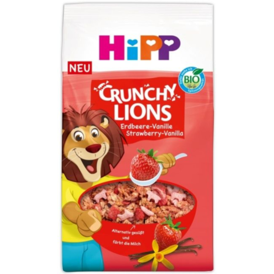 Хрупкаво овесено мюсли с екструдат от зърнени храни, лиофилизирани ягоди и екстракт от ванилия, който оцветява млякото в розово. За хрупкава и цветна закуска. С плодов, деликатен вкус на ягода и ванилия и подсладено със сироп от тапиока. За деца от 3 години.