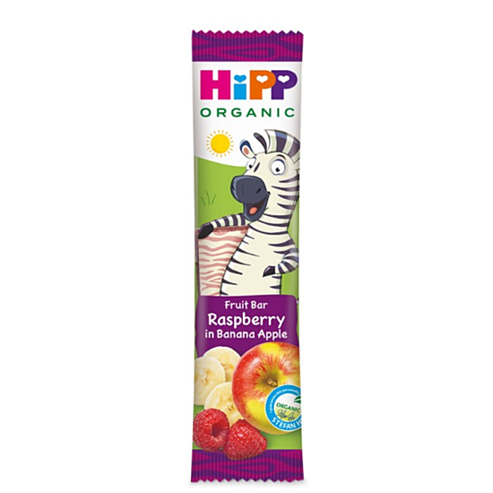 ХИП 31362 БИО ПЛОДОВ БАР С МАЛИНА, БАНАН И ЯБЪЛКА 23 ГР / за деца над 1 година - Плодовите барчета на Hipp са подходящи за деца над 1 година. Могат да се използват като междинна закуска или в движение. Съставките са с естествено съдържание на захар и без добавени ароматизанти. Възможно е в барчетата да има следи от фъстъци, соя и ядки.