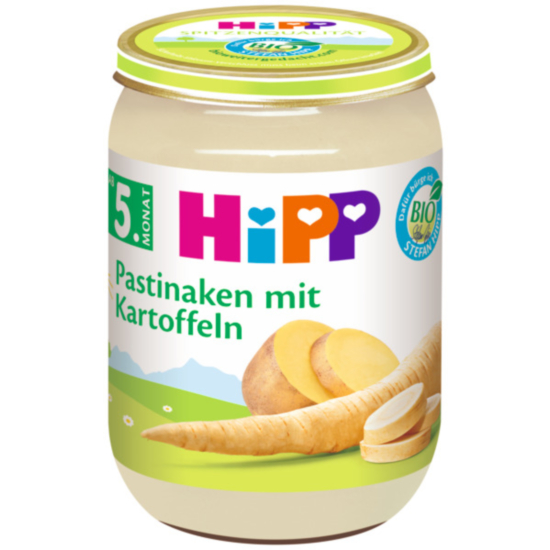 ХИП 4170 ПЮРЕ ПЪЩЪРНАК С КАРТОФИ 190ГР - Зеленчуковото пюре на Hipp с пащърнак и картофи е подходящо за деца от 5-месечна възраст. В неговите съставки се съдържат Омега-3 мастни киселини, които подпомагат развитието на мозъка и нервната тъкан. Органичните пюрета на Hipp нямат добавени ароматизанти, консерванти, оцветители и сол.