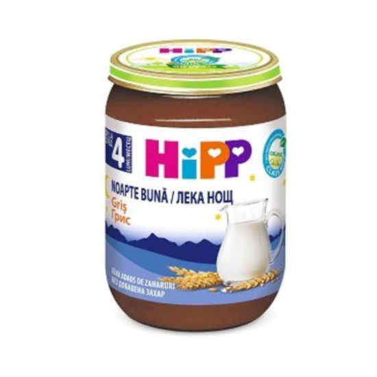 ХИП 5515 БИО КАША ЛЕКА НОЩ ГРИС 190ГР. - Млечната каша от Hipp е богата на калций и витамини. В нея няма добавена захар и ще засити детето, когато то е гладно. Кашата не съдържа консерванти, ароматизатори, ГМО и сгъстители. Тя се консумира както топла, така и студена, а вашето дете ще бъде спокойно след ядене и ще има ненарушим сън. Кашата е в буркан, което прави опаковката удобна за транспортиране и употреба.