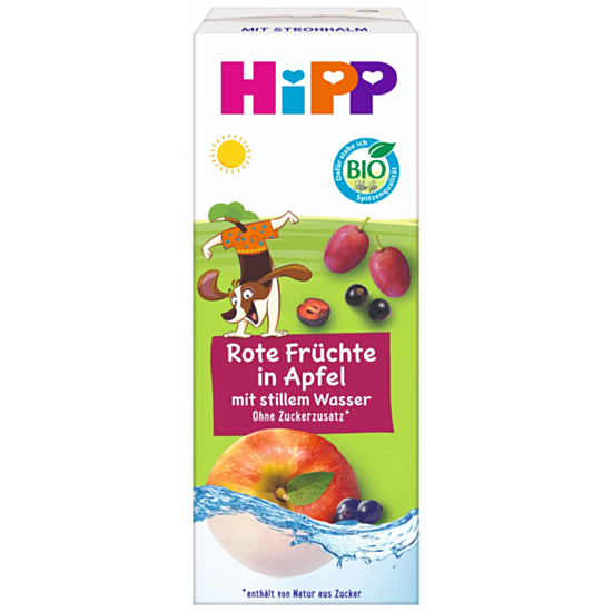 HiPP BIO Напитка Нежно ябълка и плодове с неподвижна минерална вода 200 мл, от 1+, идеален за пътуване в малка опаковка.
