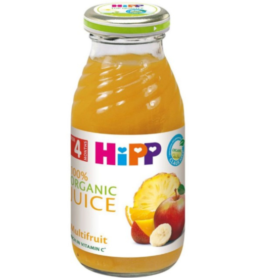 ХИП 8022 СОК МУЛТИВИТАМИН 200МЛ - Био сок мултивитамин на ХИП за бебета след 4-месечна възраст. Произведен от 100% био плодове, узрели на слънце. Богат на витамин С, с ниска киселинност, пригоден към нежния организъм на Вашето бебе. Соковете на HiPP са добър източник на витамини при преходното хранене. Не съдържа добавена захар, глутен, изкуствени аромати и оцветители. Предлага се в опаковка от 200 мл.