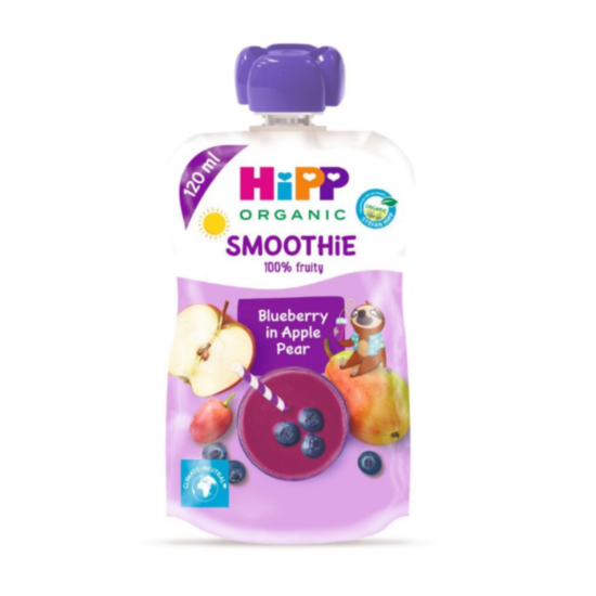 ХИП 84002 БИО СМУТИ ЯБЪЛКА КРУША И БОРОВИНКА 120ГР е страхотно плодово смути, което ще донесе прекрасна наслада на вашето дете. Продуктът не съдържа глутен. Хип Смути забавна закуска круша и ябълка с боровинки 12М+ 120 гр е иновативна комбинация от вкусни круша и ябълка, с боровинки. Опаковката е изключително практична и благодарение на нея закуската може да се консумира и по време на пътуване или разходка. Подрастващите над определена възраст, може да държат пауча в ръце и да си хапват сами, без помощ от възрастен.
