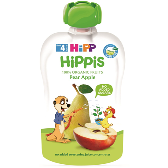 ХИП 8572 БИО ЗАБАВНА ПЛОДОВА ЗАКУСКА КРУША И ЯБЪЛКА 100ГР - Био плодовата закуска от Hipp съдържа единствено плодове от биологично производство. Тя не съдържа консерванти, оцветители, ГМО, както и добавена захар.
