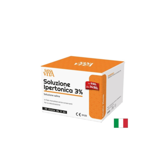 SanaVita Soluzione Ipertonica, от италианската компания Paladin Pharma представлява хипертоничен разтвор 3% , за небулизация, разпределен в 30 фалкона по 5 мл, без консерванти. Действа чрез различни механизми, които улесняват движението на секретите от дихателните пътища, подобрявайки дишането. Подходящ особено като деконгестант при настинки, запушен нос, синузит, ринит, струпеи, както и след операция на носа.