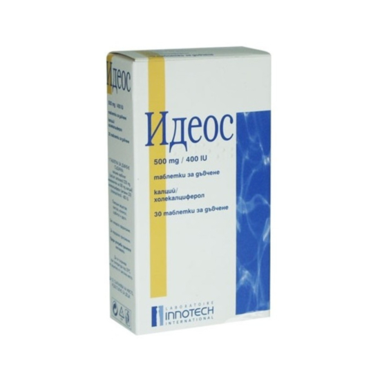 ИДЕОС 500МГ спада към групата на минералните добавки. Активните му съставки са калциев карбонат и холекалциферол (витамин D 3). Идеос е предназначен за употреба само при възрастни.
