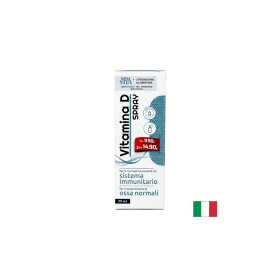 Vitamina D spray / Витамин D3 500 IU/ 12.5 µg, орален спрей, 20 ml е хранителна добавка с подсладител на Paladin Pharma, Италия. Продуктът подпомага нормалното състояние на костите и зъбите и имунната система.